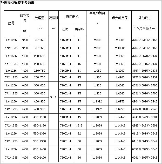 YA圓振動(dòng)篩篩箱運(yùn)動(dòng)軌跡為圓,適用于煤、石灰石、碎石、砂礫、金屬或非金屬礦石及其他物料的篩分。機(jī)體采用框架式結(jié)構(gòu),利用普通電機(jī)外拖動(dòng)振動(dòng)器使篩體沿激振力方向作周期限性往復(fù)振動(dòng),物料在篩面上連續(xù)作圓運(yùn)動(dòng),從而達(dá)到篩分目的。