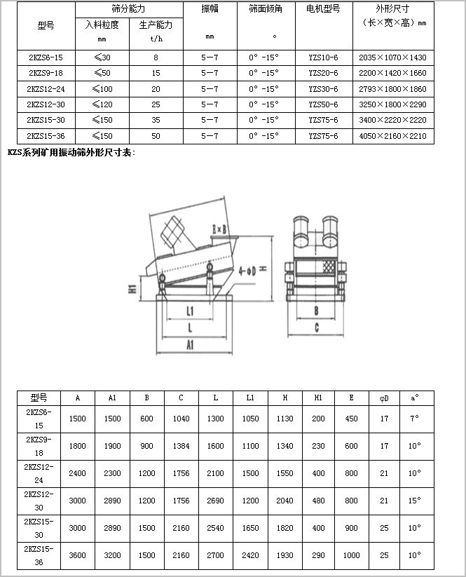 KZS系列礦用振動(dòng)篩型號(hào)含義: