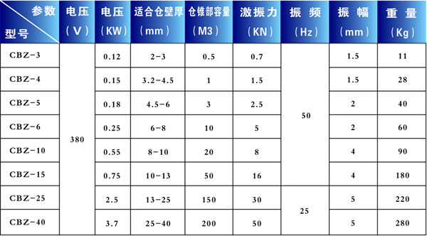 六、CBZ系列防爆倉(cāng)壁振動(dòng)器技術(shù)參數(shù):