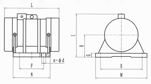 | 型號 | 激振力(KN) | 功率(kw) | 電流(A) | 安裝尺寸(mm) | 外形尺寸(mm) | 重量(Kg) | ||||||||