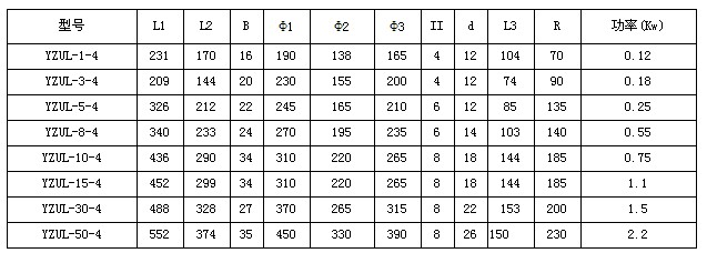 YZUL系列立式振動電機技術參數(shù)及外形尺寸表: